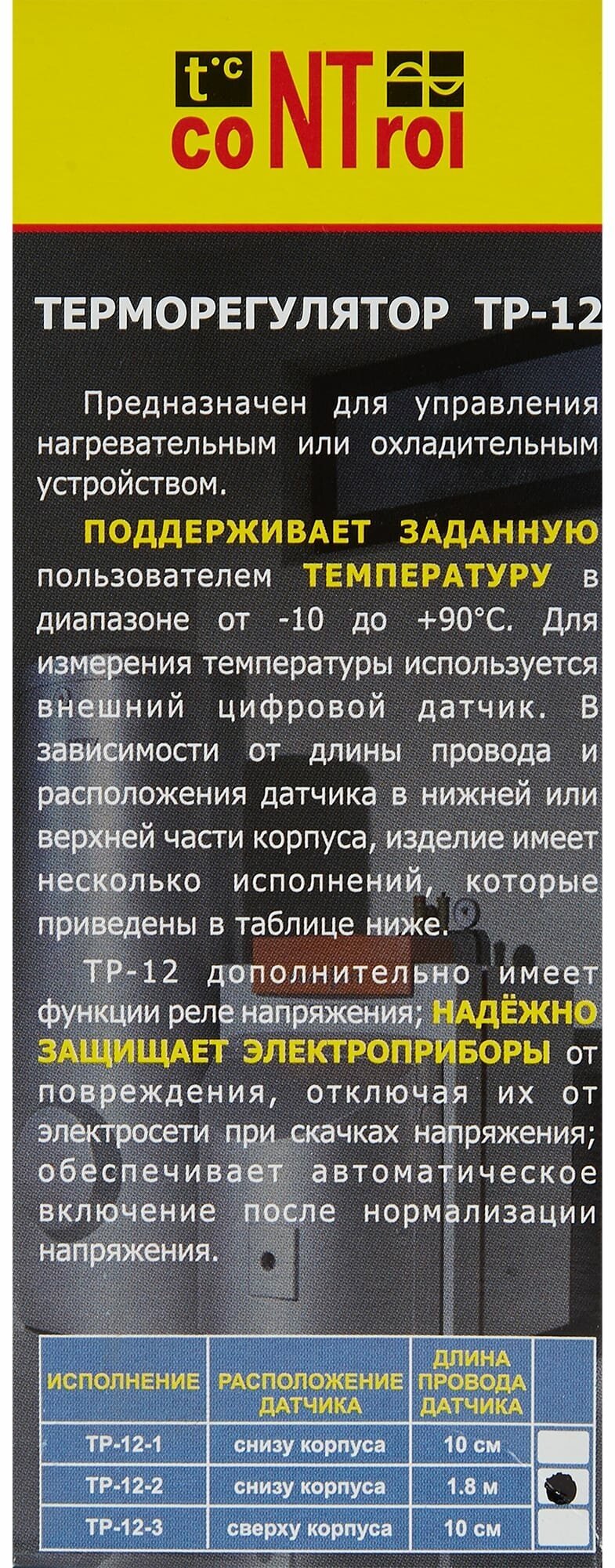 Type of control: electronic, maximum load: 3600 W, minimum temperature: -10 °C, maximum temperature: 90 °C, air temperature control, underfloor heating sensor: not used, communication type: wired