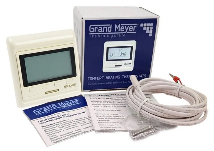 Type of control: electronic, maximum load: 3600 W, minimum temperature: 5 °C, maximum temperature: 35 °C, air temperature control, underfloor heating temperature control, underfloor heating sensor: in