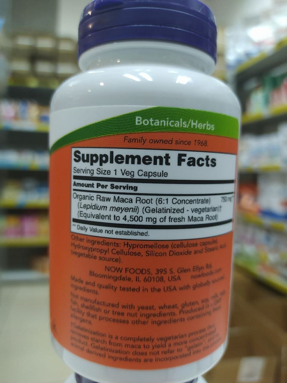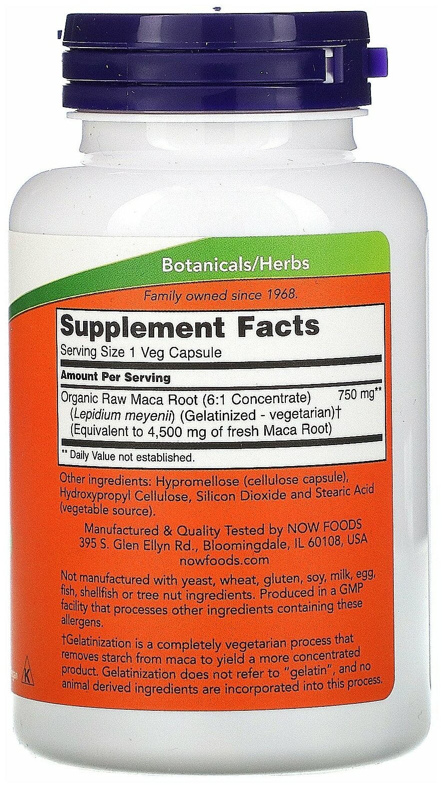 Organic Raw Maca Root Concentrate 6:1 Lepidium meyenii Gelled Vegetarian Friendly 4500mg Fresh Maca Root 750mg Equivalent