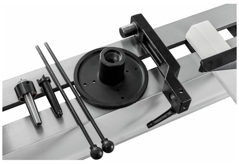 Machine tool, tool rest 300 mm wide for turning tools, faceplate 150 mm in diameter, four-tooth drive center MK-2, rotating thrust center, knockout rod