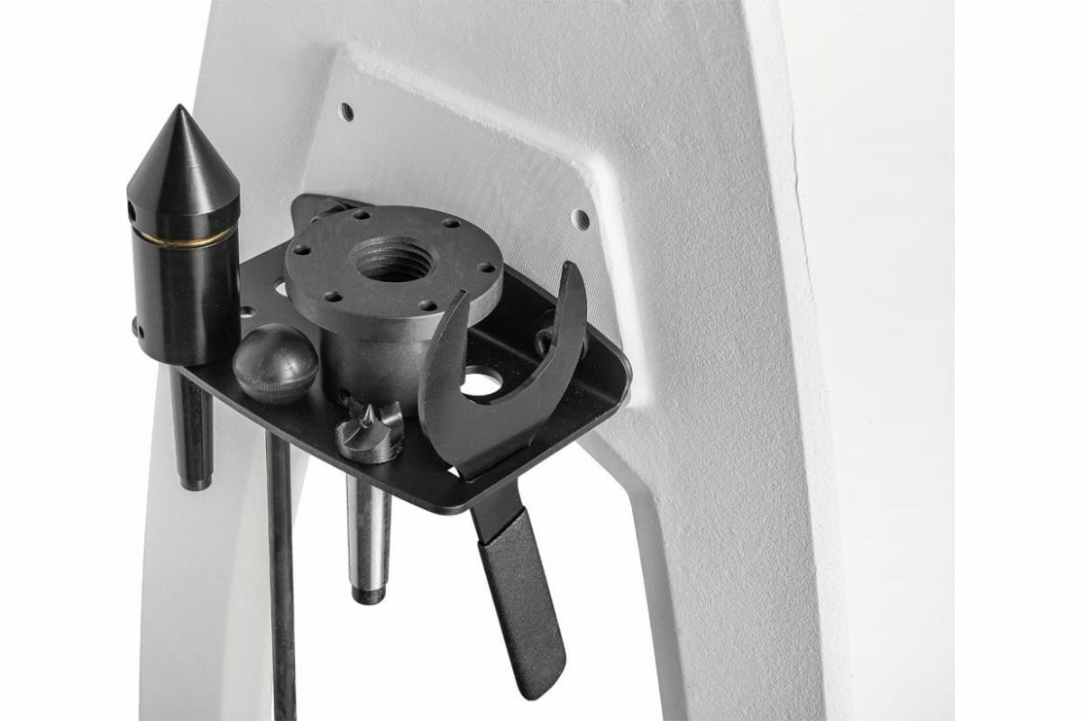Lathe, tool rest 350 mm wide for turning tools with an additional horizontal insert, faceplate 76 mm in diameter, drive center MK-2, two rotating thrust centers, knockout rod, bracket for