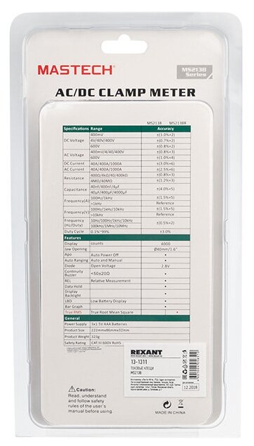 Pulse duty cycle: 10%...90%, error ±3%, Input impedance: ~10 MΩ, Relative measurement function, Overload indication: "OL" symbol on the LCD, Low battery indicator, Dimensions: 225x86x32 mm, Weight: 330 g, Weight incl.