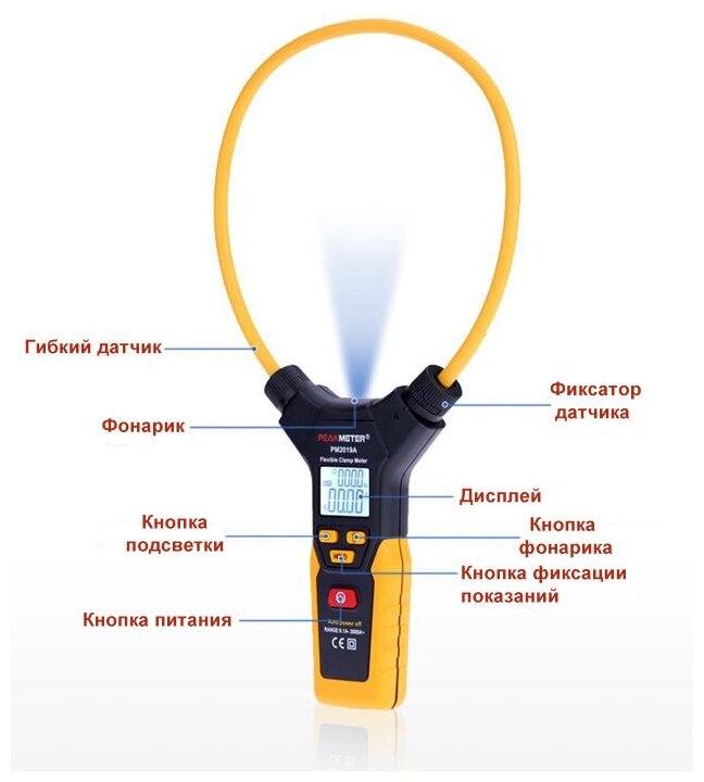 AC current measurement, automatic range selection, clamp size: 75 mm