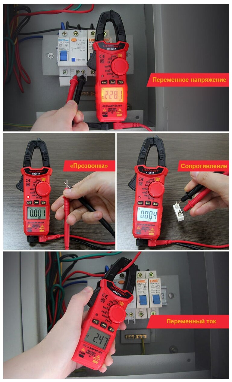 AC voltage measurement, DC voltage measurement, AC current measurement, wire and connection fault detection, resistance measurement, clamp size: 25 mm