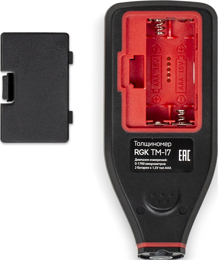 Measuring principle: eddy current, maximum thickness: 1350 µm, maximum error: 3%, acoustic signal, auto-off, battery: batteries, number of batteries: 2, measuring surfaces: non-ferrous metals, �
