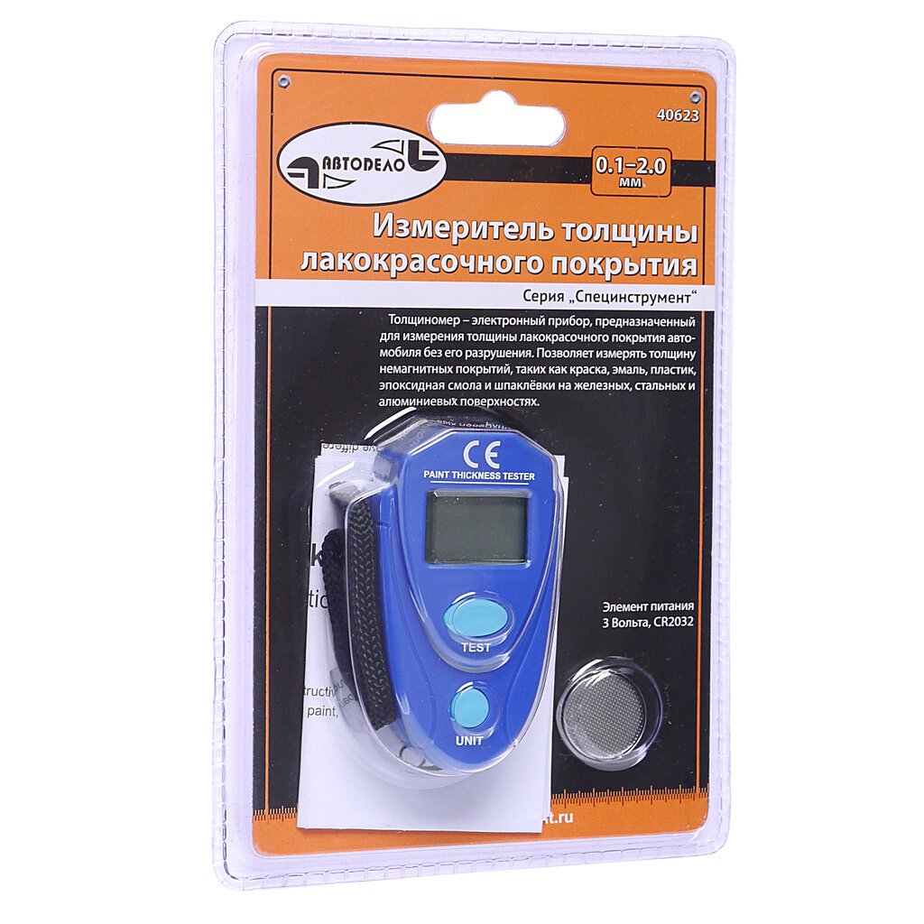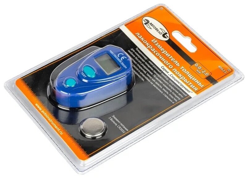 Measurement principle: ultrasonic, minimum thickness: 100 µm, maximum thickness: 2000 µm, maximum error: 2%, beep, auto-off, battery: batteries, number of batteries: 1