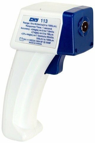 Complete set: LKP thickness gauge "CHY-113", belt holster, ferrous metal calibration washer, plastic calibration plate, "Krona" type battery 1 pc., instruction manual