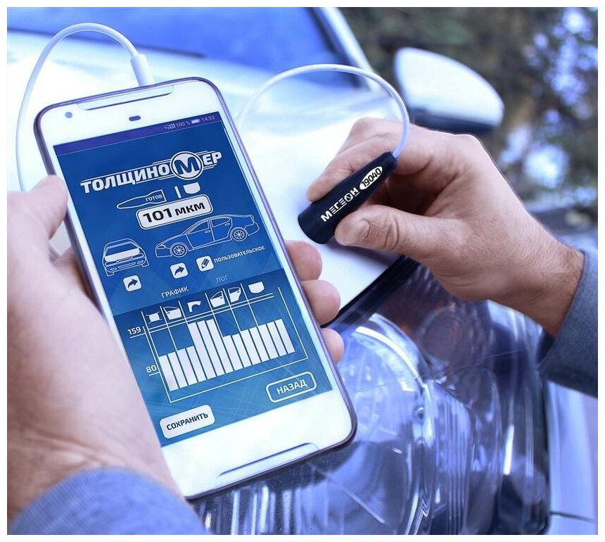 Measuring principle: eddy current, minimum thickness: 50 µm, maximum thickness: 2200 µm, minimum radius of curvature: 30 mm, maximum error: 2%, PC connection, measuring surfaces: ferrous metals