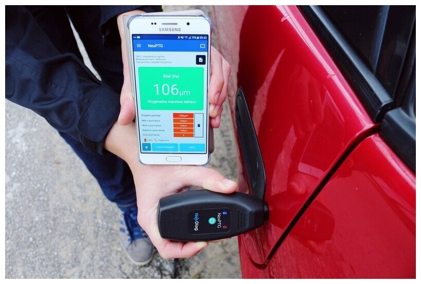 Measurement principle: eddy current, maximum thickness: 1000 µm, minimum radius of curvature: 10 mm, maximum error: 2%, continuous measurement mode, auto-off, battery: batteries, number of batteries