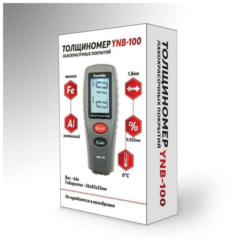 Measuring principle: eddy current, maximum thickness: 1350 µm, maximum error: 3%, acoustic signal, auto-off, battery: batteries, number of batteries: 2, measuring surfaces: non-ferrous metals, �