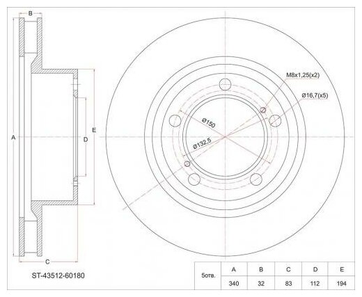 front TOYOTA 43512-60180 340x32 for Lexus LX, Toyota Land Cruiser