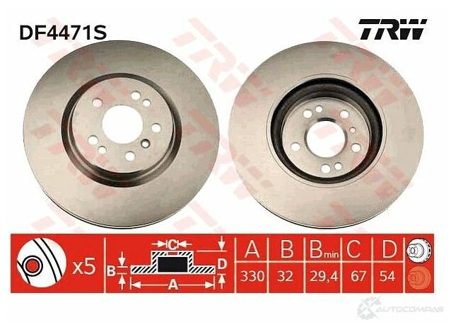 Front TRW DF4471S 330x32 for Mercedes-Benz R-class, Mercedes-Benz M-class