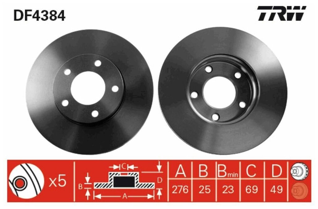 Front TRW DF4384 278x25 for Mazda 5, Mazda 3, Mazda Premacy