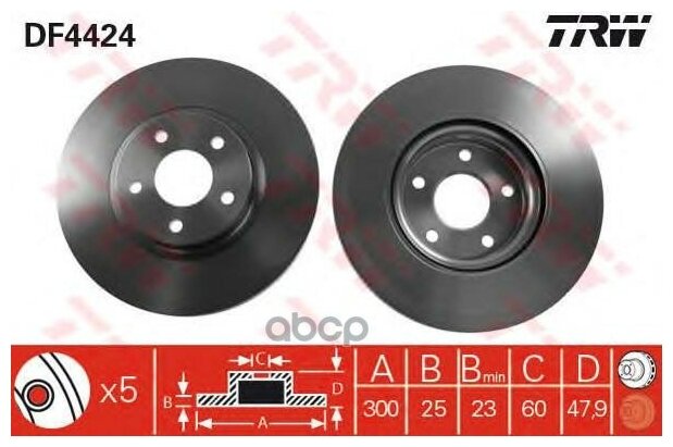 Mounting bridge: front, disc diameter: 296 mm, center hole diameter: 62 mm, number of fixing holes: 5, hole pattern diameter: 114.30 mm, center part diameter: 155 mm, disc thickness: 28 mm, min.
