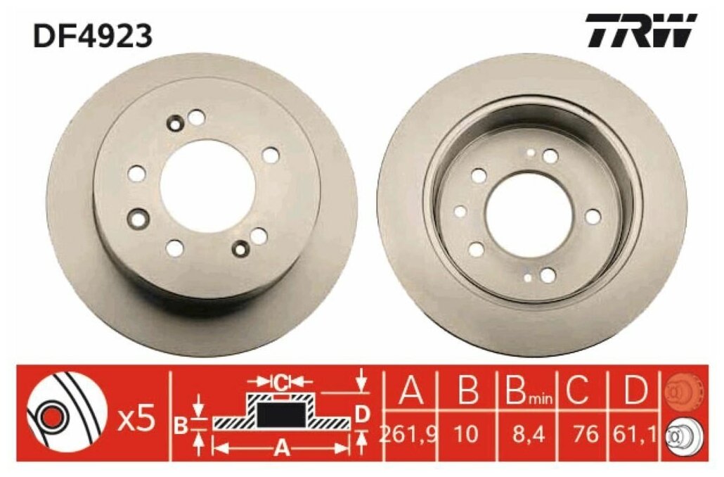 Mounting bridge: rear, disc diameter: 262 mm, center hole diameter: 76 mm, number of fixing holes: 5, hole pattern diameter: 114.30 mm, thread diameter: 12.60 mm, center part diameter: 168 mm, thickness