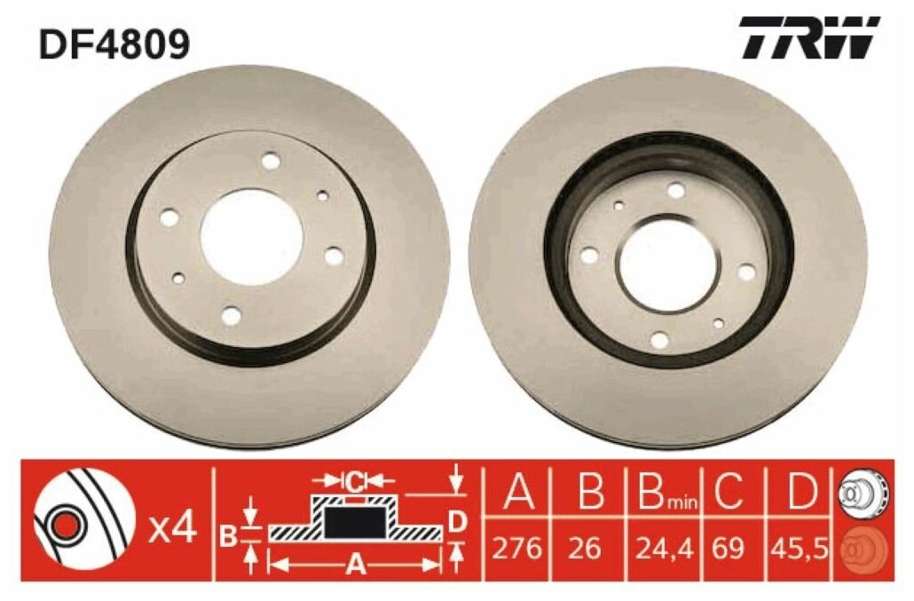 Front TRW DF4809 276x26 for Mitsubishi Galant, Mitsubishi Lancer