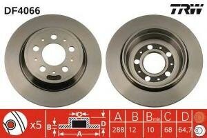 Mounting bridge: rear, disc diameter: 288 mm, center hole diameter: 68 mm, number of mounting holes: 5, hole pattern diameter: 108 mm, center part diameter: 178 mm, disc thickness: 12 mm, minimum