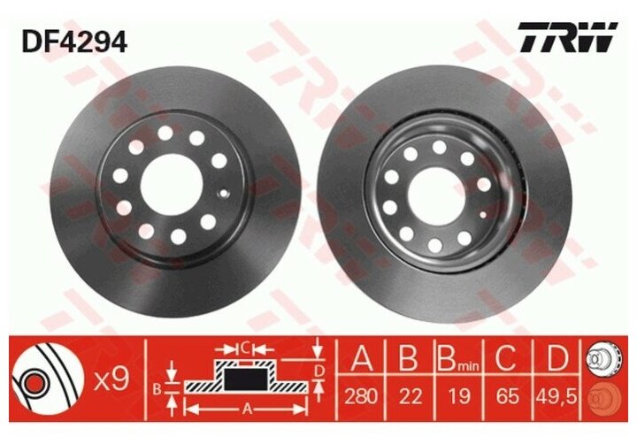 Mounting bridge: front, disc diameter: 280 mm, center hole diameter: 65 mm, number of fixing holes: 9, hole pattern diameter: 112 mm, thread diameter: 15.50 mm, center part diameter: 154.10 mm, thickness