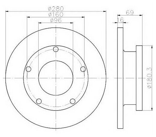 Mounting bridge: front, disc diameter: 296 mm, center hole diameter: 62 mm, number of fixing holes: 5, hole pattern diameter: 114.30 mm, center part diameter: 155 mm, disc thickness: 28 mm, min.