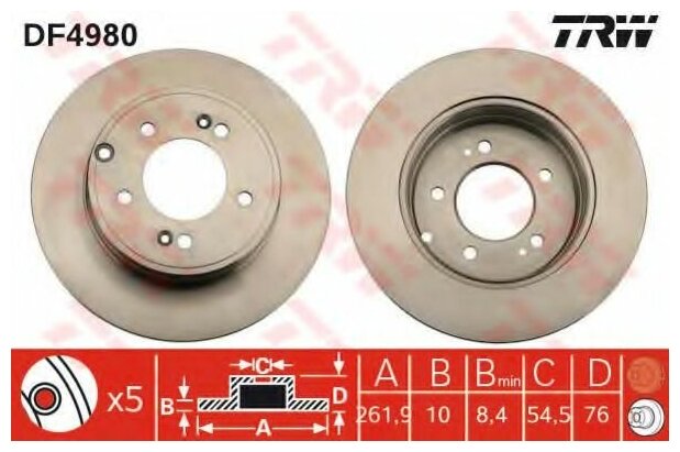 Mounting bridge: rear, disc diameter: 284 mm, center hole diameter: 76 mm, number of fixing holes: 5, hole pattern diameter: 114.30 mm, thread diameter: 12.50 mm, center part diameter: 168 mm, thickness