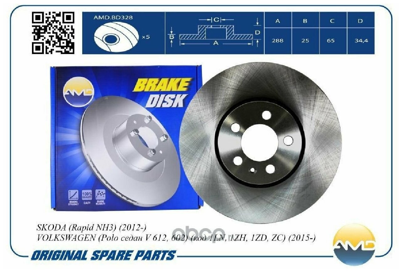 Mounting bridge: front, disc diameter: 288 mm, center hole diameter: 65 mm, number of mounting holes: 5, hole diameter: 100 mm, disc thickness: 25 mm, minimum disc thickness: 22 mm, thickness: 25