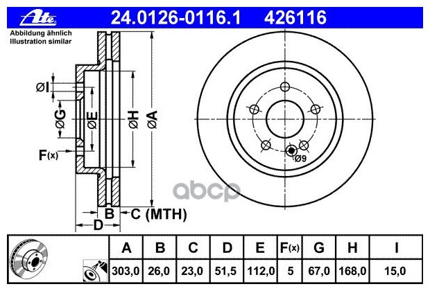 Brake mercedes ml230 430 w163 98 vented 303x26 ate 24012601161 - ate 5c0ecafa6e4896265ae3