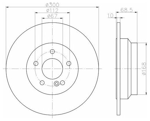 Disc diameter: 300 mm, center hole diameter: 67 mm, hole pattern diameter: 112 mm, minimum disc thickness: 8.30 mm