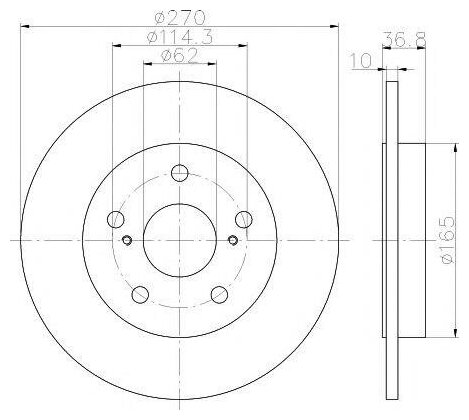 Mounting bridge: rear, disc diameter: 270 mm, center hole diameter: 62 mm, hole pattern diameter: 114.30 mm, minimum disc thickness: 8 mm