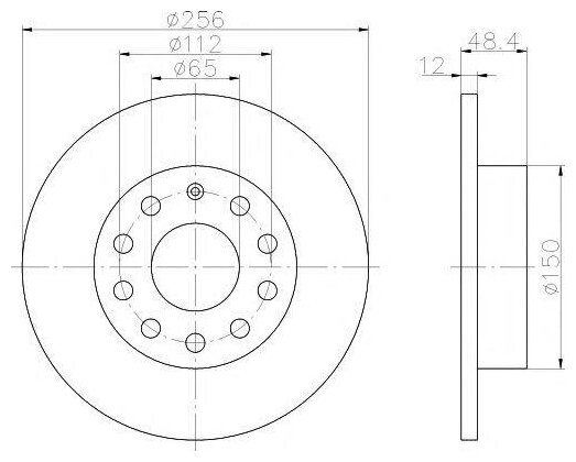 Mounting bridge: rear, disc diameter: 256 mm, center hole diameter: 65 mm, hole diameter: 112 mm, disc thickness: 12 mm, minimum disc thickness: 10 mm, thickness: 12 mm