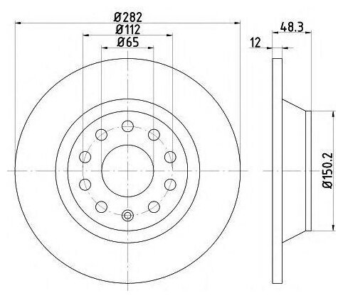 Mounting bridge: rear, disc diameter: 282 mm, center hole diameter: 65 mm, hole diameter: 112 mm, disc thickness: 12 mm, minimum disc thickness: 10 mm, thickness: 12 mm