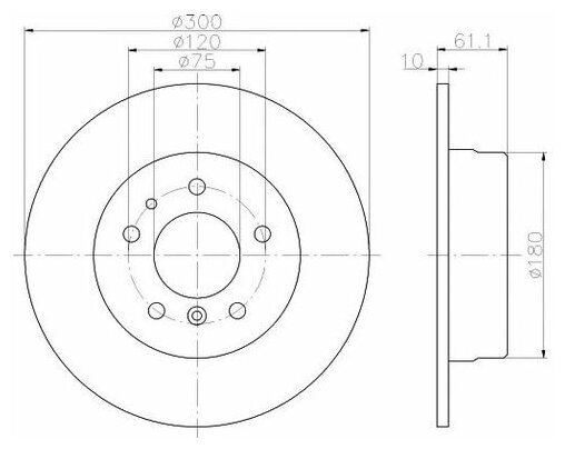 Mounting axle: rear, rear, disc diameter: 300 mm, center hole diameter: 75 mm, hole diameter: 120 mm, disc thickness: 61.10 mm, minimum disc thickness: 8.40 mm, thickness: 61.10 mm