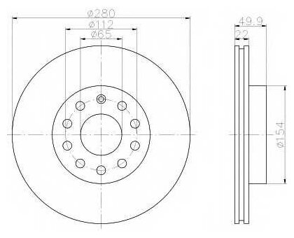 Disc diameter: 279.90 mm, center hole diameter: 65 mm, hole diameter: 112 mm, disc thickness: 22 mm, minimum disc thickness: 19 mm, thickness: 22 mm, internal ventilation