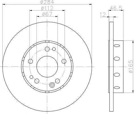 Mounting Bridge: Front, Disc Diameter: 284mm, Center Hole Diameter: 67mm, Disc Thickness: 12mm, Minimum Disc Thickness: 10mm, Thickness: 12mm