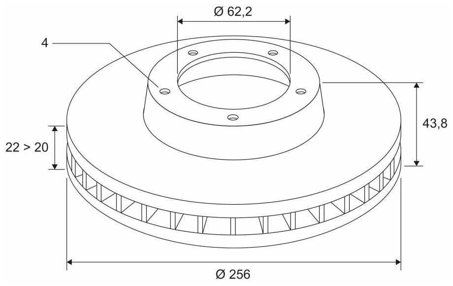 Front Valeo 297455 256x22 for Hyundai Solaris, Kia Rio