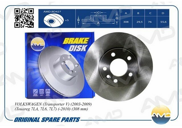 AMD AMD. BD427 brake VOLKSWAGEN Transporter V 2003-2009 Touareg 7LA, 7L6, 7L7 -2010 308 mm 1pc