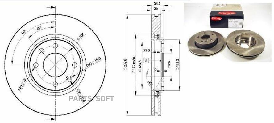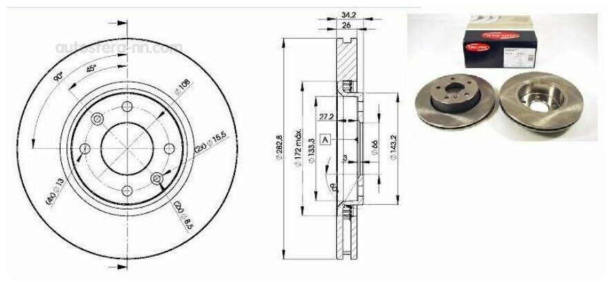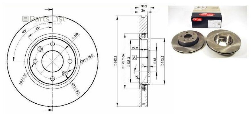 Mounting bridge: front, disc diameter: 296 mm, center hole diameter: 62 mm, number of fixing holes: 5, hole pattern diameter: 114.30 mm, center part diameter: 155 mm, disc thickness: 28 mm, min.