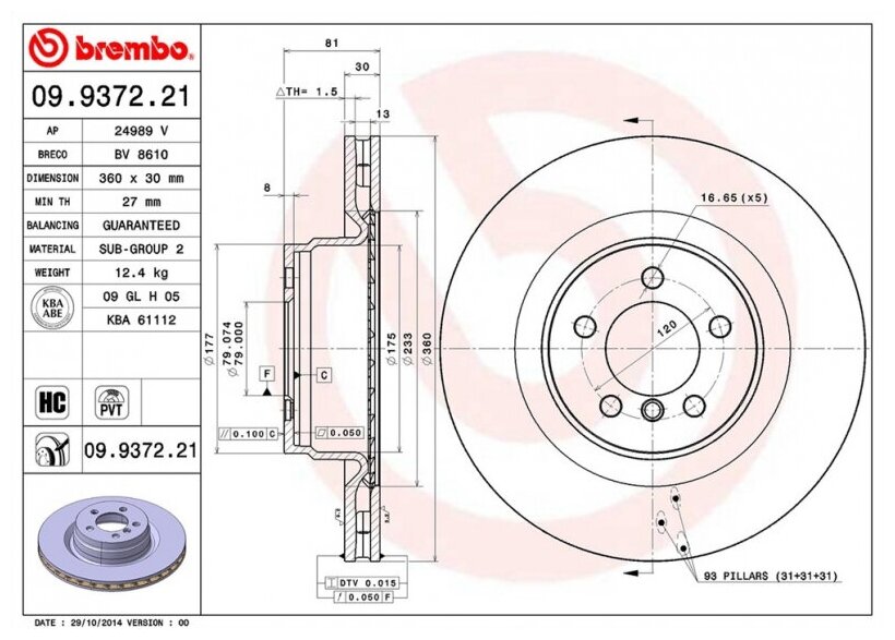 Brake front brembo 09.9372.21 360x30 for Land Rover Range Rover
