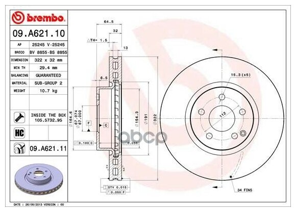 Brake front brembo 09.A621.11 322x32 for Mercedes-Benz C-class, Mercedes-Benz SLK-class, Mercedes-Benz E-class