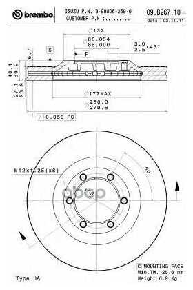 Brake front brembo 09.B267.10 280x27 for Isuzu D-Max