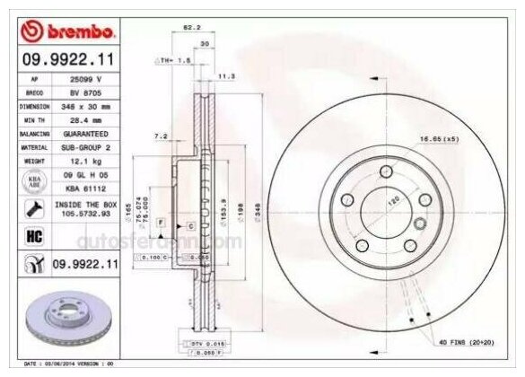 Mounting bridge: front, disc diameter: 348 mm, center hole diameter: 75 mm, number of fixing holes: 5, hole pattern diameter: 120 mm, center part diameter: 165 mm, disc thickness: 30 mm, min.