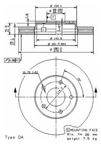 Brake front brembo 09.9368.11 280x28 for Nissan Almera Tino, Nissan Maxima, Nissan Primera, Nissan X-Trail