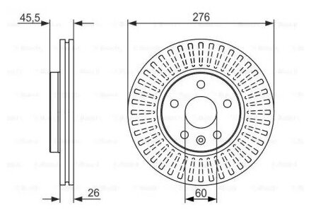 Mounting bridge: front, disc diameter: 276 mm, center hole diameter: 60 mm, number of fixing holes: 5, hole diameter: 105 mm, disc thickness: 26 mm, minimum disc thickness: 23 mm, thickness: 26