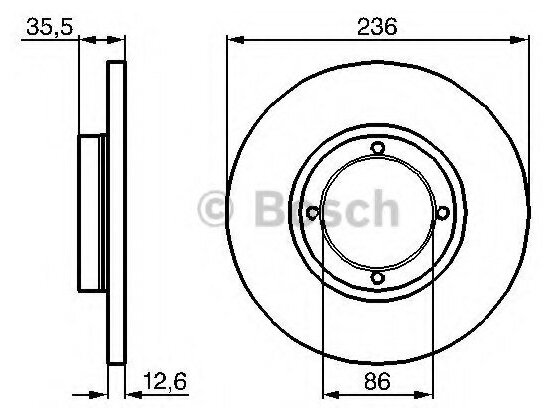 Mounting bridge: front, disc diameter: 236 mm, center hole diameter: 86 mm, number of mounting holes: 4, hole diameter: 102 mm, disc thickness: 12.60 mm, minimum disc thickness: 9.70 mm, thickness