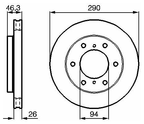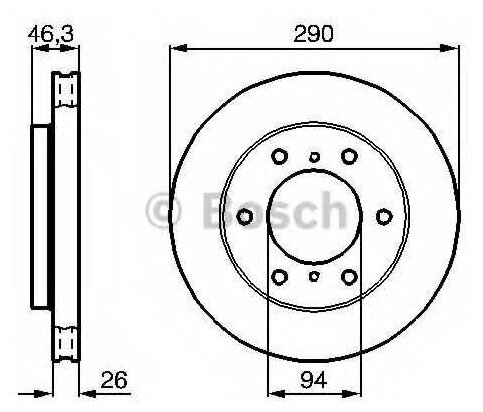 Installation bridge: front, disc diameter: 290 mm, center hole diameter: 94 mm, number of mounting holes: 5, disc thickness: 26 mm, thickness: 26 mm, internal ventilation