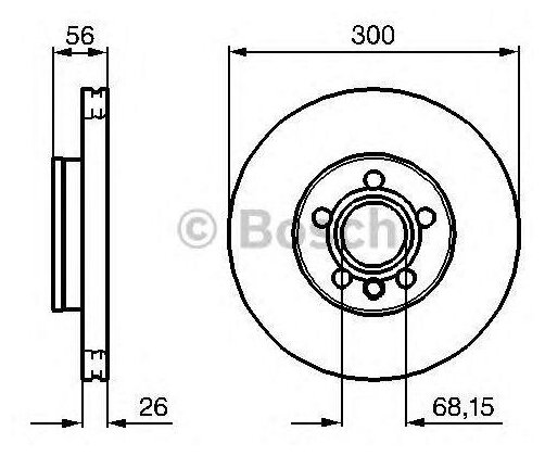 Mounting bridge: front, disc diameter: 300 mm, center hole diameter: 68.15 mm, number of fixing holes: 5, hole diameter: 112 mm, disc thickness: 26 mm, minimum disc thickness: 22 mm, thickness: