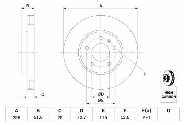 Mounting Bridge: Front, Disc Diameter: 296mm, Center Hole Diameter: 70.70mm, Number of Mounting Holes: 5, Disc Thickness: 29mm, Thickness: 29mm, Internal Ventilation, Corresponding OE Codes: Vauxhall 96625948, 20955857; Opel