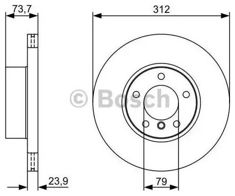Mounting bridge: front, disc diameter: 312 mm, center hole diameter: 79 mm, number of mounting holes: 5, disc thickness: 23.90 mm, minimum disc thickness: 22.40 mm, thickness: 23.90 mm, internal ventilation