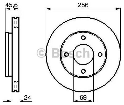 Installation bridge: front, disc diameter: 256 mm, center hole diameter: 69 mm, number of mounting holes: 4, disc thickness: 24 mm, thickness: 24 mm, internal ventilation