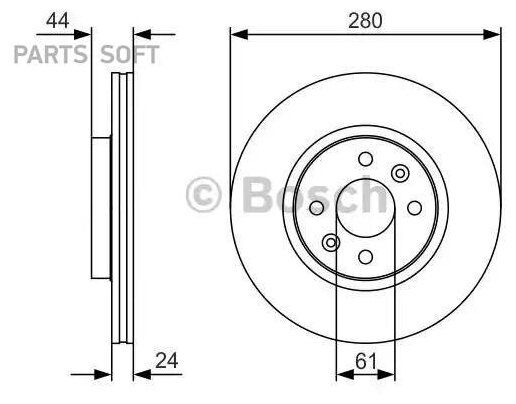Mounting bridge: front, disc diameter: 280 mm, center hole diameter: 61 mm, number of mounting holes: 4, disc thickness: 24 mm, minimum disc thickness: 21.80 mm, thickness: 24 mm, internal ventilation