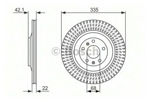 Disc diameter: 335 mm, central hole diameter: 68 mm, number of mounting holes: 5, disc thickness: 22 mm, minimum disc thickness: 20 mm, thickness: 22 mm, internal ventilation
